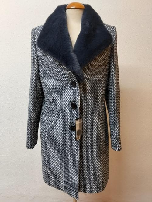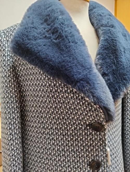 Abrigo estampado, cuello con pelo azul,cashmere