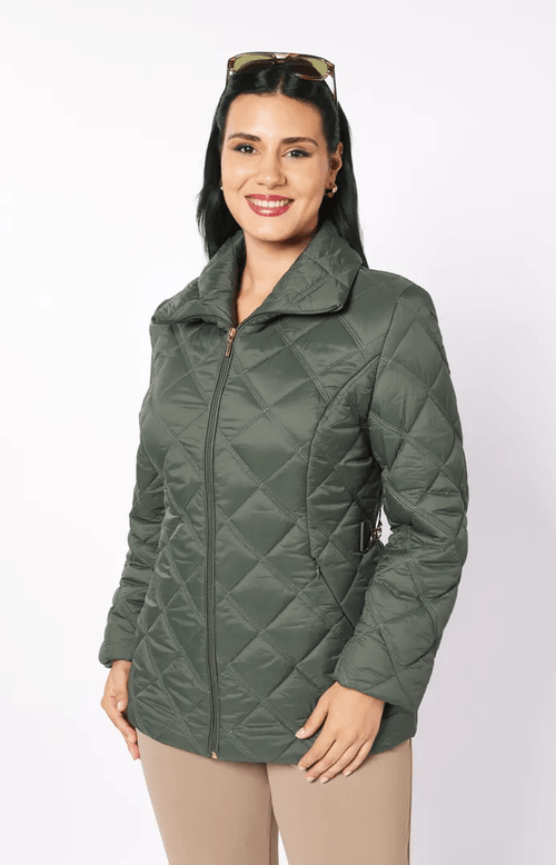 Cazadora color verde,adornos en laterales y bolsillos de cremallera