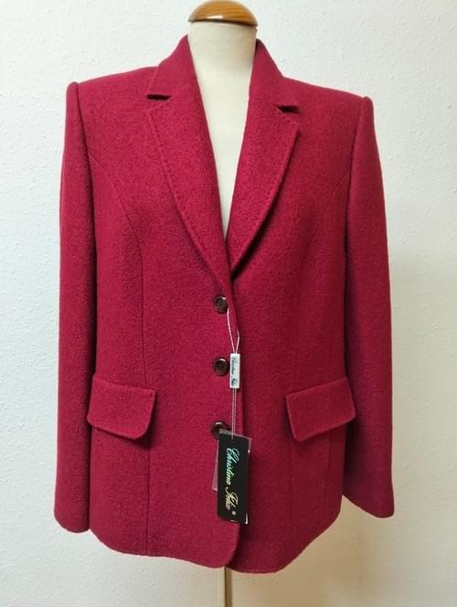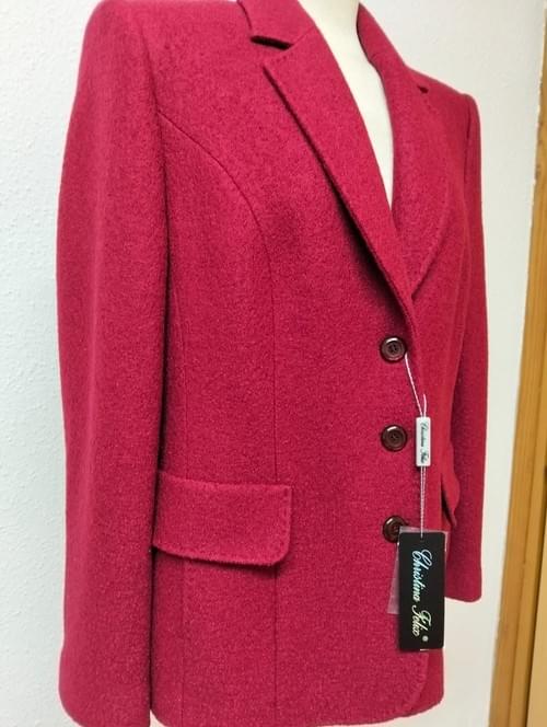 Chaqueta color granate, lana cocida, corte satre,cuello solapa.